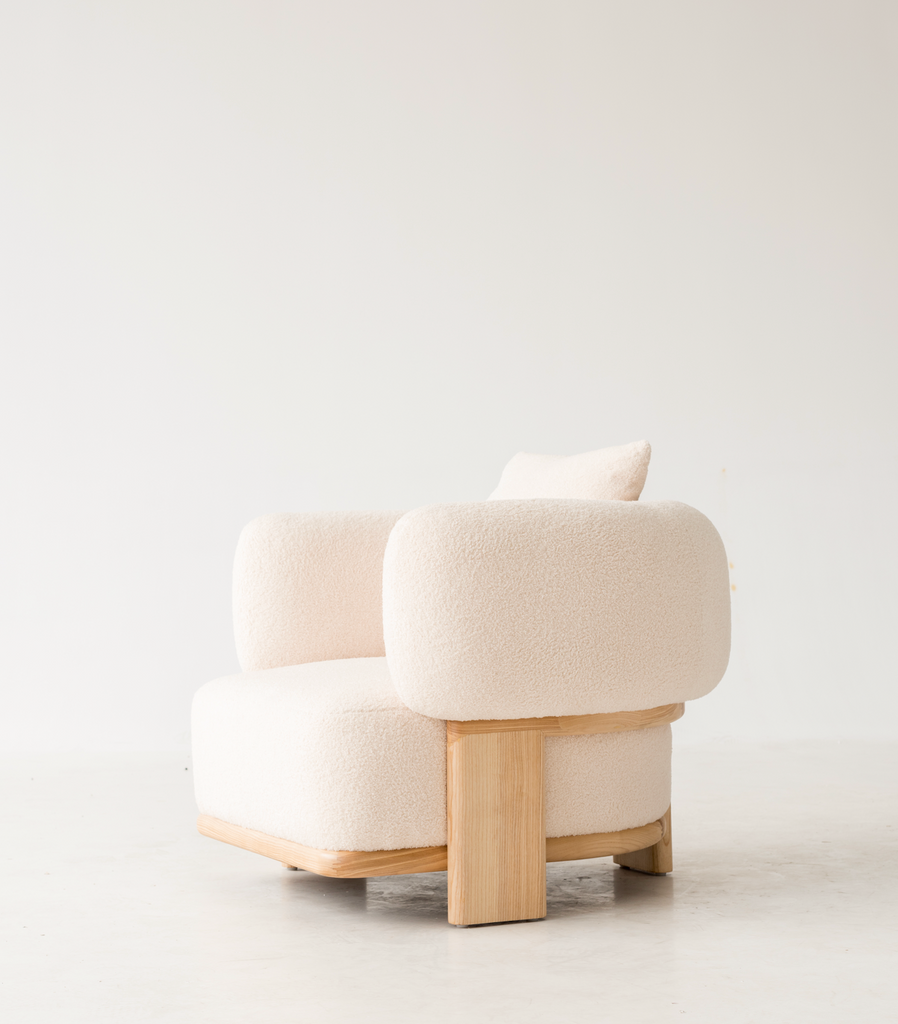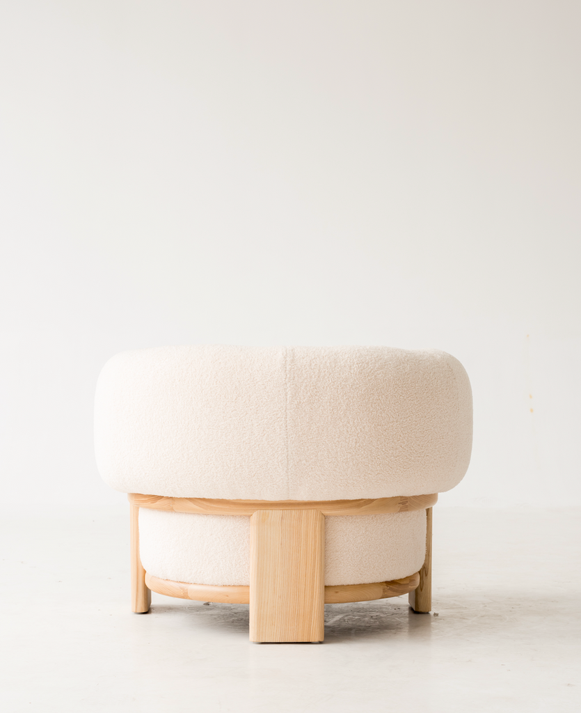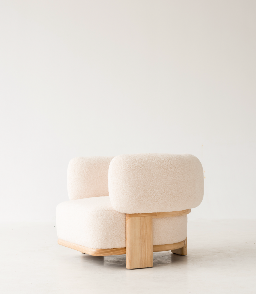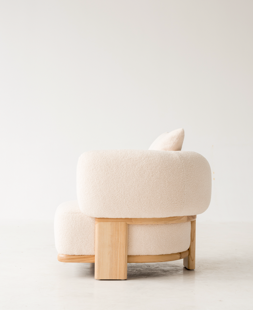 Made from an Ash wood frame and covered in plush high density foam and finished with a beautiful textured Bouclé fabric.
