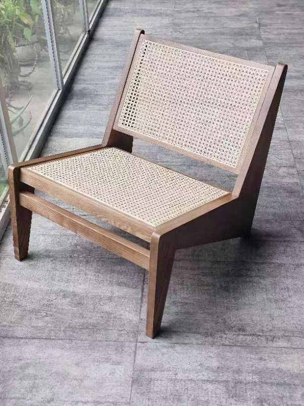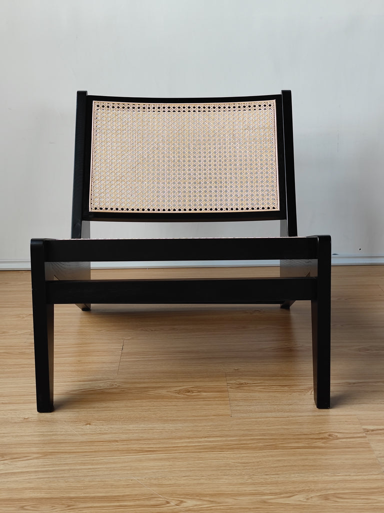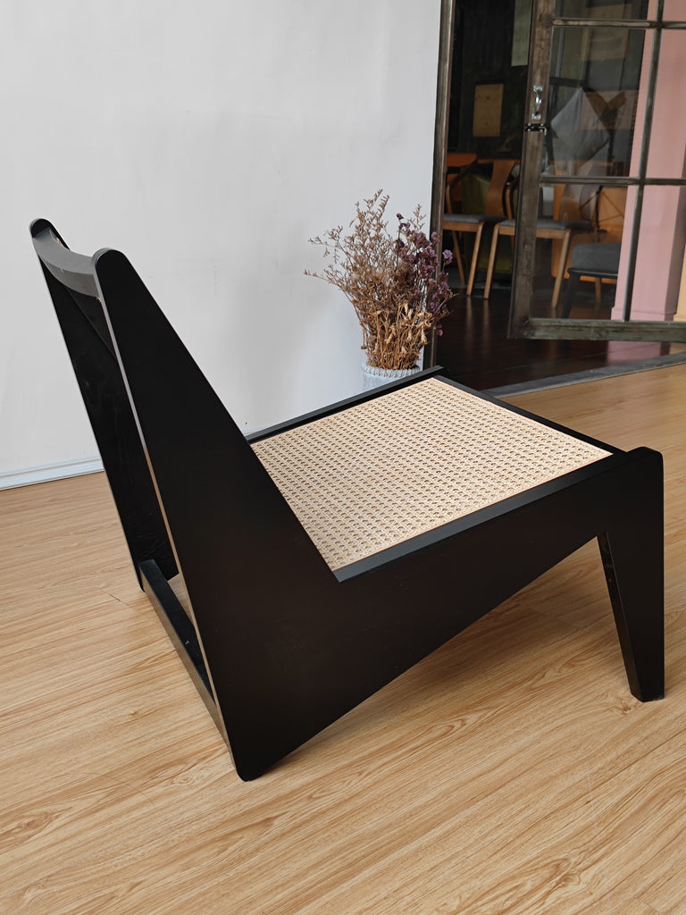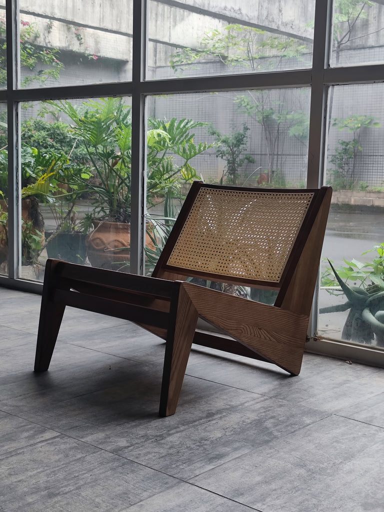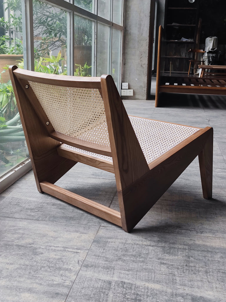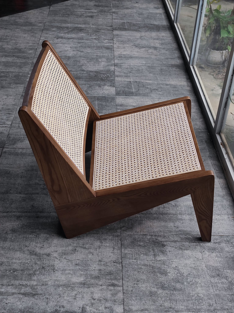 Inspirado en la icónica Pierre Jeanneret Kangaroo Silla, este hermoso marco natural de madera de cerezo natural, admite un respaldo y asiento de Rattan de caña natural.