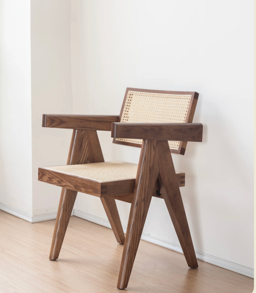 Dining Chair (2pc) | Cherry wood & Natural Rattan